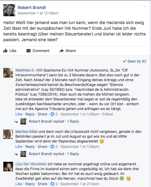Leider ist es in Spanien nicht ganz so einfach an diese Nummer zu kommen, da scheinbar einiger Unfug damit getrieben wird. Für mich ist die lange Wartezeit natürlich extrem blöd, da wir unsere Leistungen zu 95% exportieren.